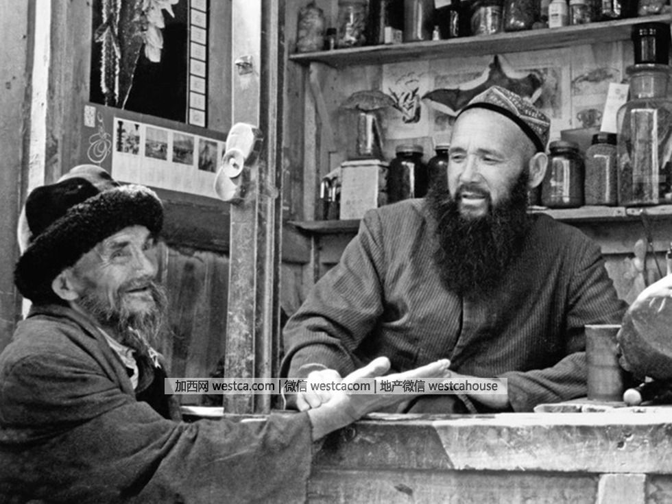 1987年,新疆喀什,在集市坐诊的维吾尔郎中。(图源:VCG)