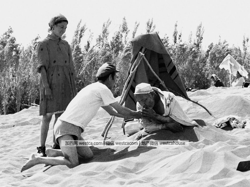 1986年,新疆吐鲁番,沙疗。(图源:VCG)