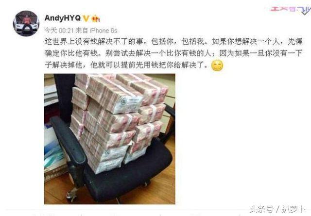 爱炫富的黄毅清炫起富来就是这么简单粗暴,以前还直接晒300万现金呢,人家说了:这世界上没有钱解决不了的事。