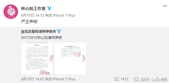 面对网上铺天盖地的言论,最后不得已林心如关闭了微博,工作室并发表声明,用法律武器维护: