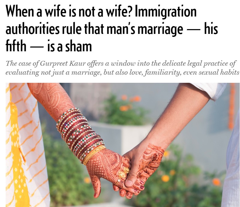 这个移民案例提供评估婚姻的真实,不仅依据法律,还包括评估双方之间爱情、熟悉、亲密、甚至是性习惯等等。