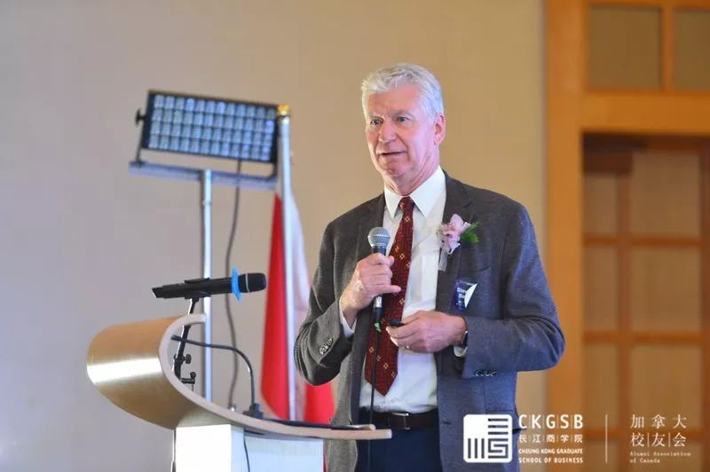 George先生首先感谢长江商学院加拿大校友会和温哥华经济委员会组织本次活动。他介绍说中国卑诗省的第二大贸易伙伴,自今年4月以来,与中国的商贸总额比去年同比增长7%,实现23亿贸易额,取得了优异的成绩。卑诗省率先与广东省结为友好省份,温哥华更是与广州结为姐妹城市。除此之外,卑诗省与北京上海、香港往来密切。我们政府致力于解决商贸活动中的分歧和摩擦,政策鼓励对外商贸的发展。George表示:热切希望长江商学院的校友们,持续为中加关系和贸易往来贡献力量。