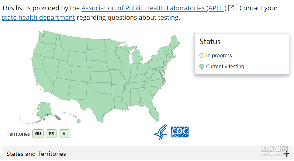 美国本土各州区、阿拉斯加以及夏威夷,均有疑似病例在检测中