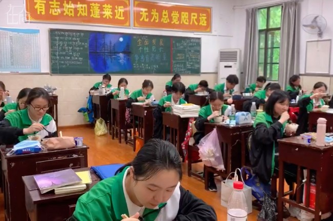 现在学校实行了“全封闭”管理,早上到校,晚上回家,中午我们都在学校吃饭,以减少外界接触机会,确保顺利参加高考。