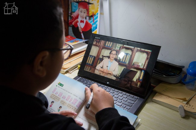 图为女儿在蹭舅舅家的Wi-Fi上网课。姥爷家没装网线,只能蹭隔壁舅舅家的Wi-Fi,有时候信号不好,不小心就充了60块钱的流量。