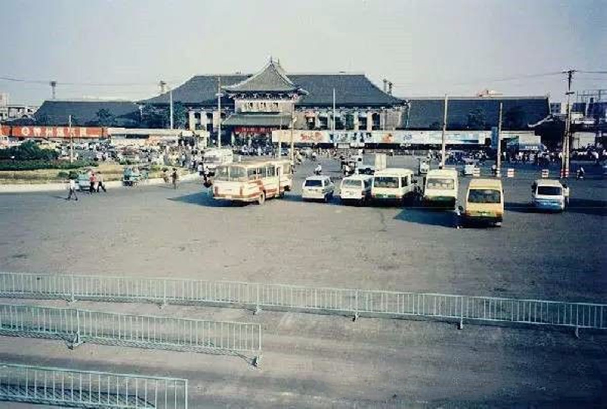 1980年代的杭州站广场,广场大而空旷,那时候的乘客很少,没有现在的人山人海和熙熙攘攘。