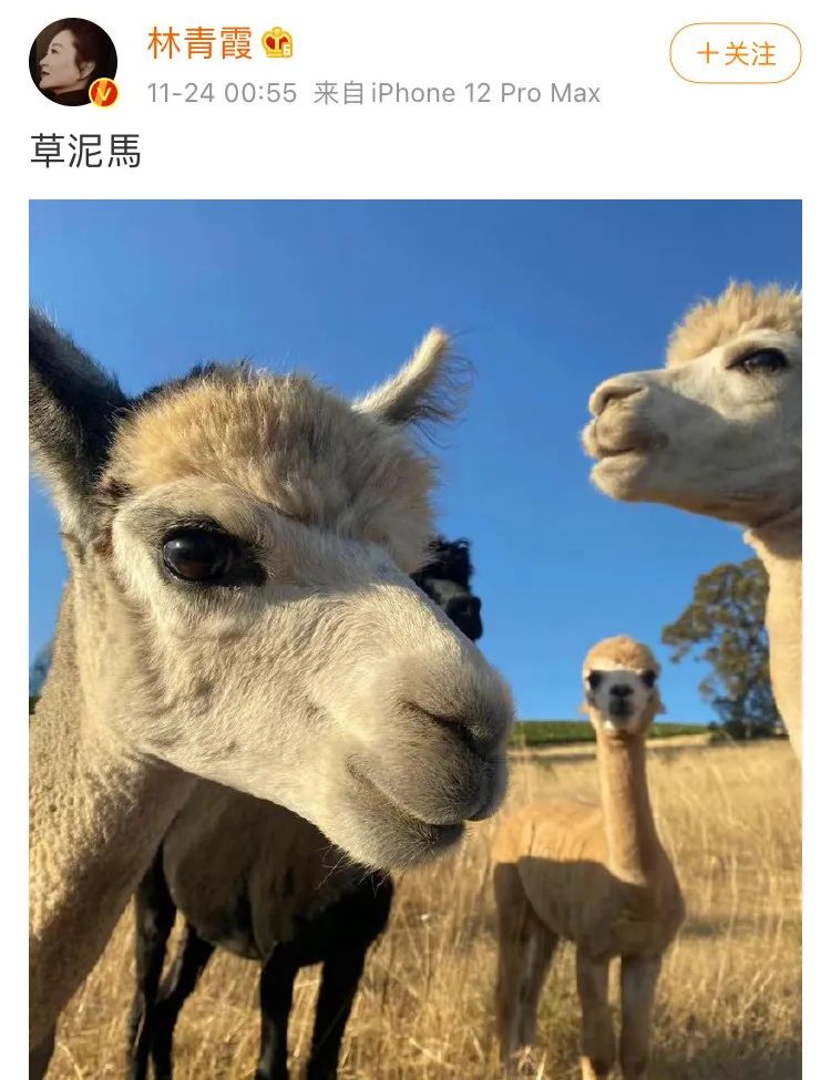 但是姐姐还有另一面,她晒出一张亲手拍摄的羊驼照片,配文“草泥马”。虽然已经是旧梗了,然而林青霞动用这三个字的时候,有奇效,原来女神这么接地气!