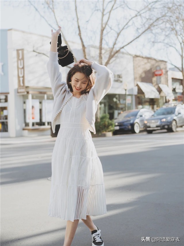 穿搭建议:长款白色连衣裙