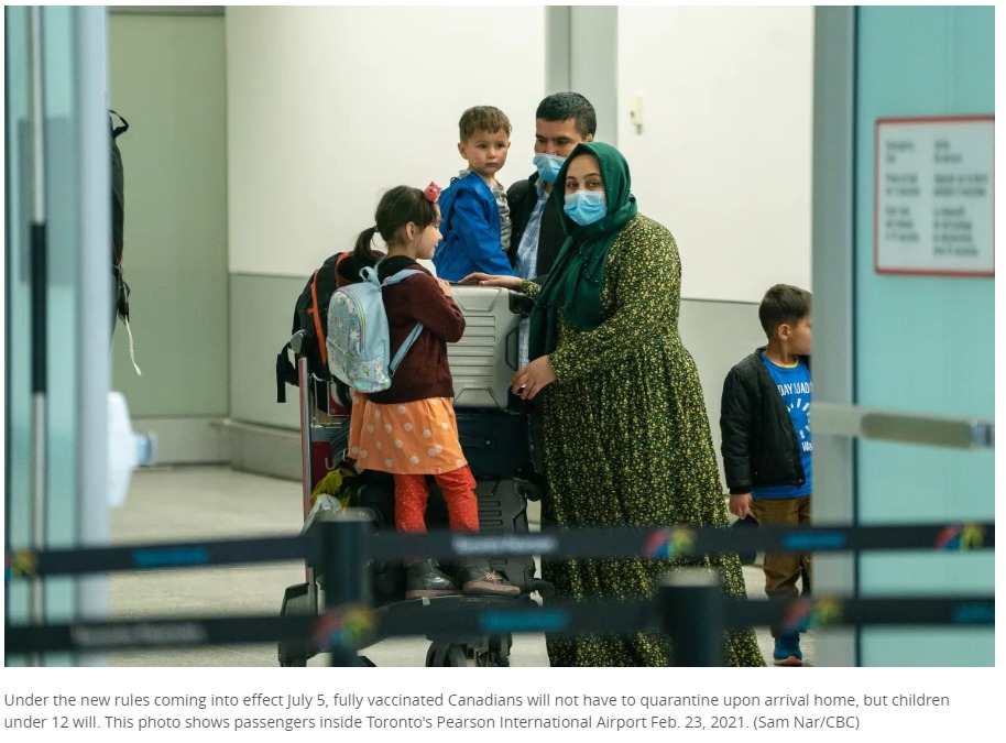 加拿大尚未批准12岁及以下儿童接种的新冠疫苗。目前,如果完全接种疫苗的父母带着年幼的孩子旅行,联邦政府规定孩子们回家后必须隔离。