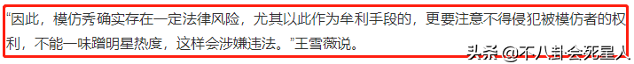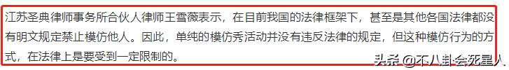 一位王姓律师表示,虽然我国的法律没有明文规定禁止模仿他们,但这种模仿行为的方式,在法律上是要受到一定限制的。