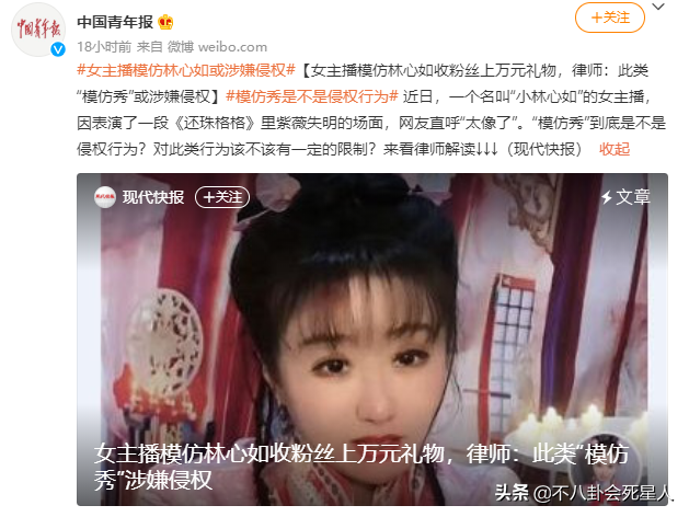 所以,网红模仿明星还是要适可而止才行。也不知道林心如看到了自己的角色被人这样模仿消费,会作何感想。
