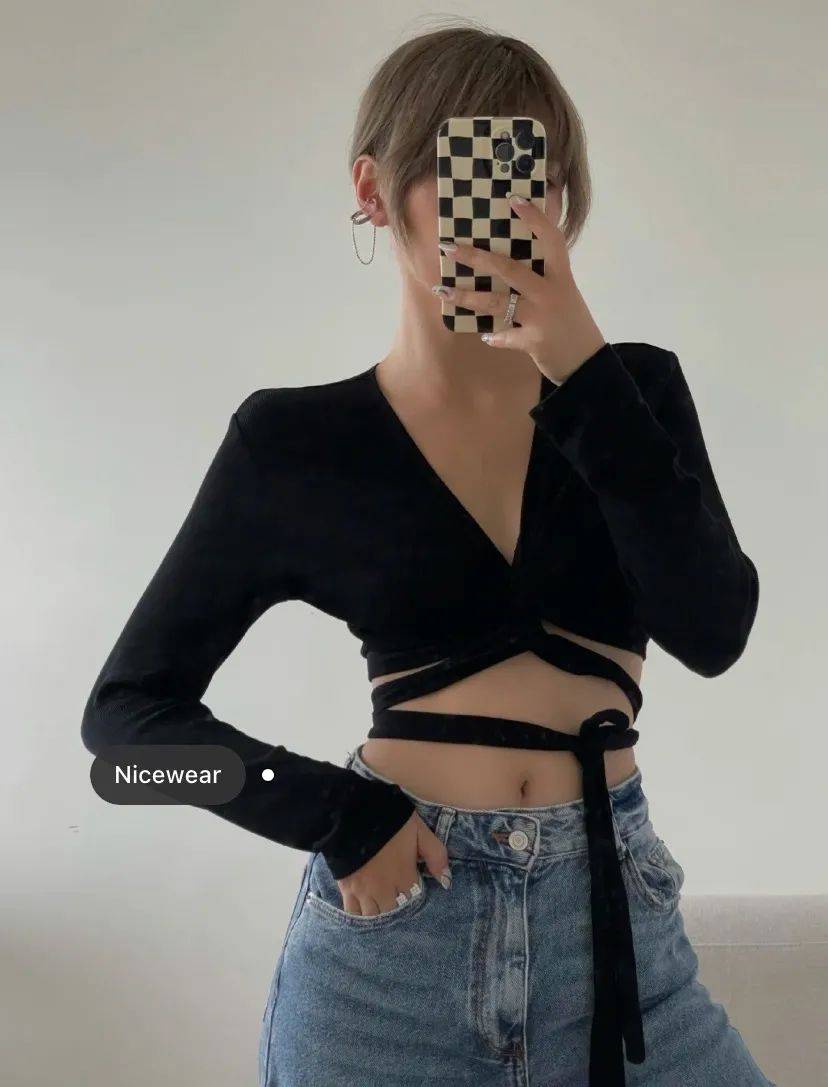 绑带短上衣有一个对腰粗特友好的点,就是它可控!可根据自己的腰围调节到最显瘦的地方。