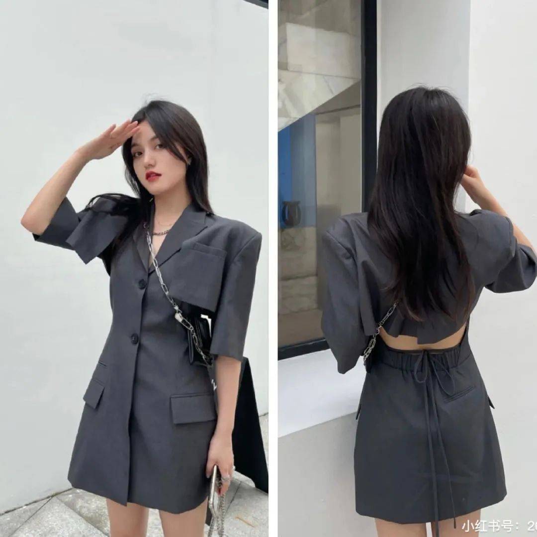 像这种西装版型的穿起来会比较酷飒,而且这种版型对苹果型姐妹很友好,一点不会凸显肚子上的肉肉。