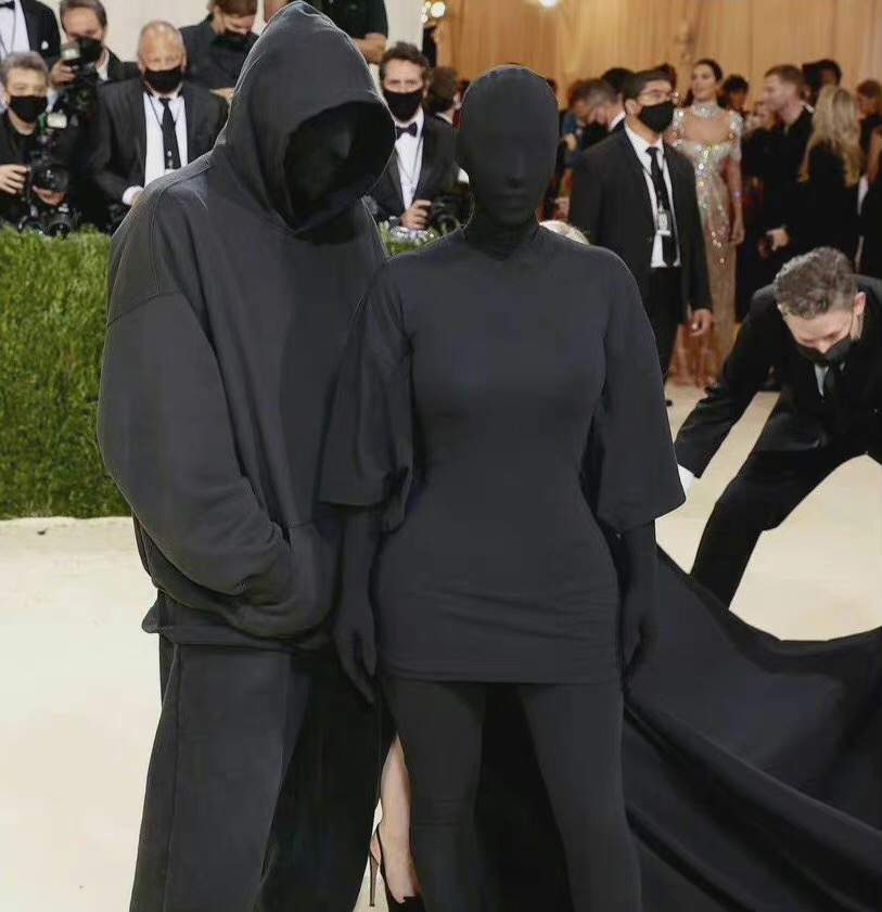 值得一提的是,与卡戴珊离婚刚半年多的侃爷也以全黑蒙面造型亮相。并且这对前夫妻还一起走红毯。