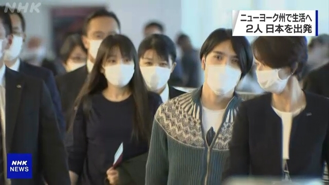 綜合日本共同社英文網、NHK英文網等媒體報道,真子與丈夫小室圭14日8時許抵達東京羽田機場,搭乘民航客機前往美國紐約。兩人在多名警員和機場人員的護送下登機,離開前對日本皇室和支持他們的人表示感謝。