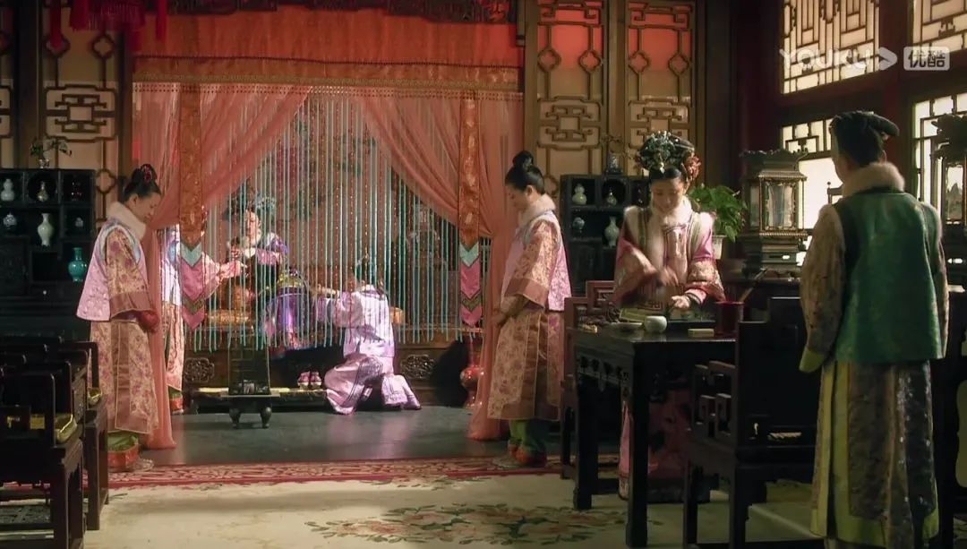 所以關於她住所的描繪並不算多,但從寥寥幾個鏡頭中依然可以看出,她地位不高,也不怎麼得寵,房間內的陳設與裝飾,都比不上當初的碎玉軒。