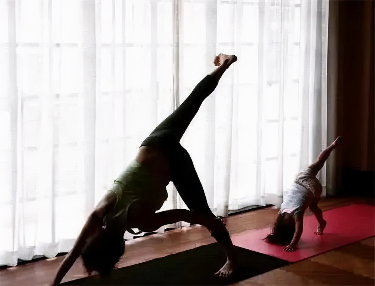 客廳裡有一扇巨大的落地窗,周圍沒布置什麼家具,剛好可以鋪塊墊子做瑜伽,保持身材和愉悅心情。