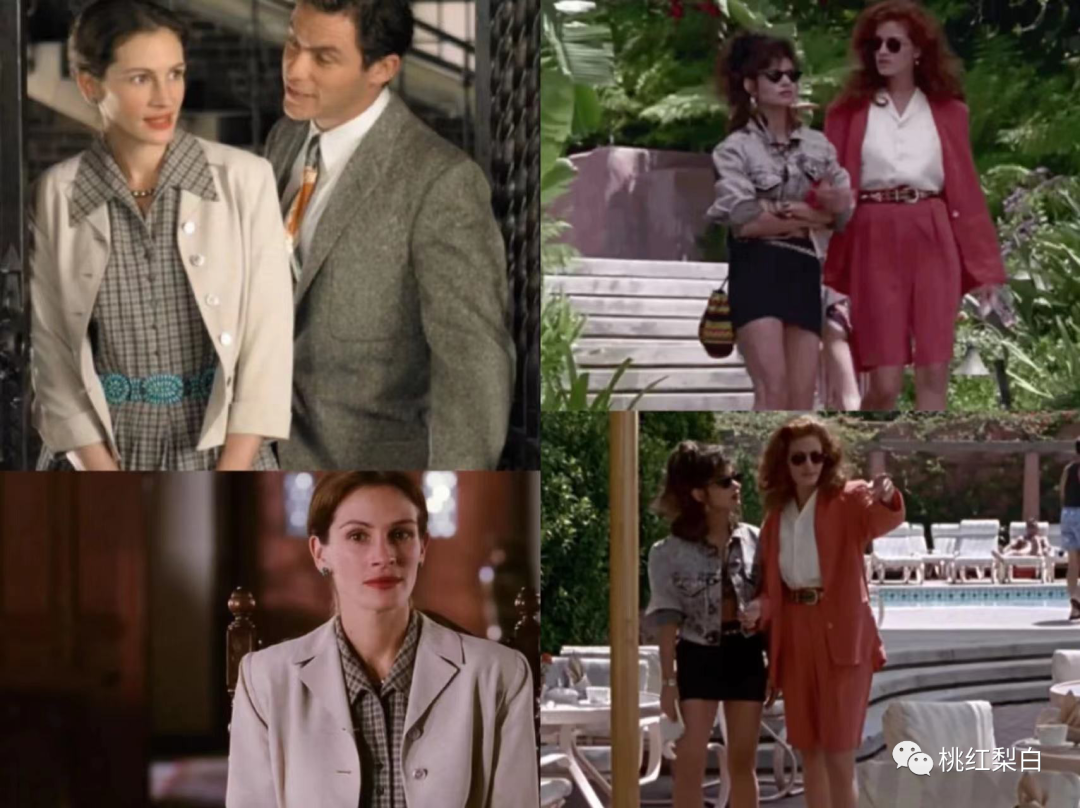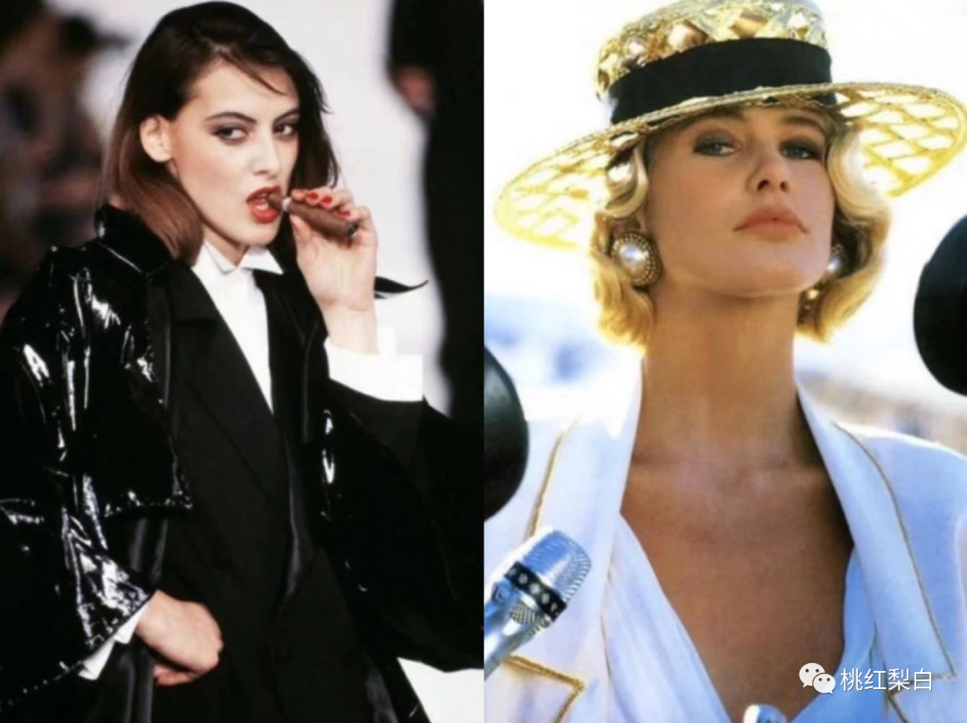 因為時期比較接近,有時候大家會感覺在一些視覺元素上,兩者會比較類似。 比如都講究茂密蓬松的頭發、有結構設計感的套裝等。