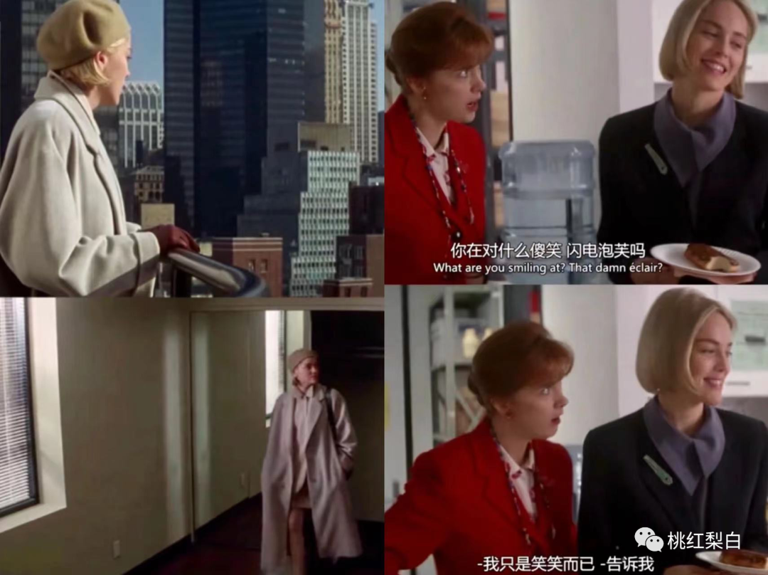 莎朗·斯通在90年代的《偷窺》裡,就貢獻了很多素材。 不管是西裝還是大衣,版型都是大且偏硬朗的。