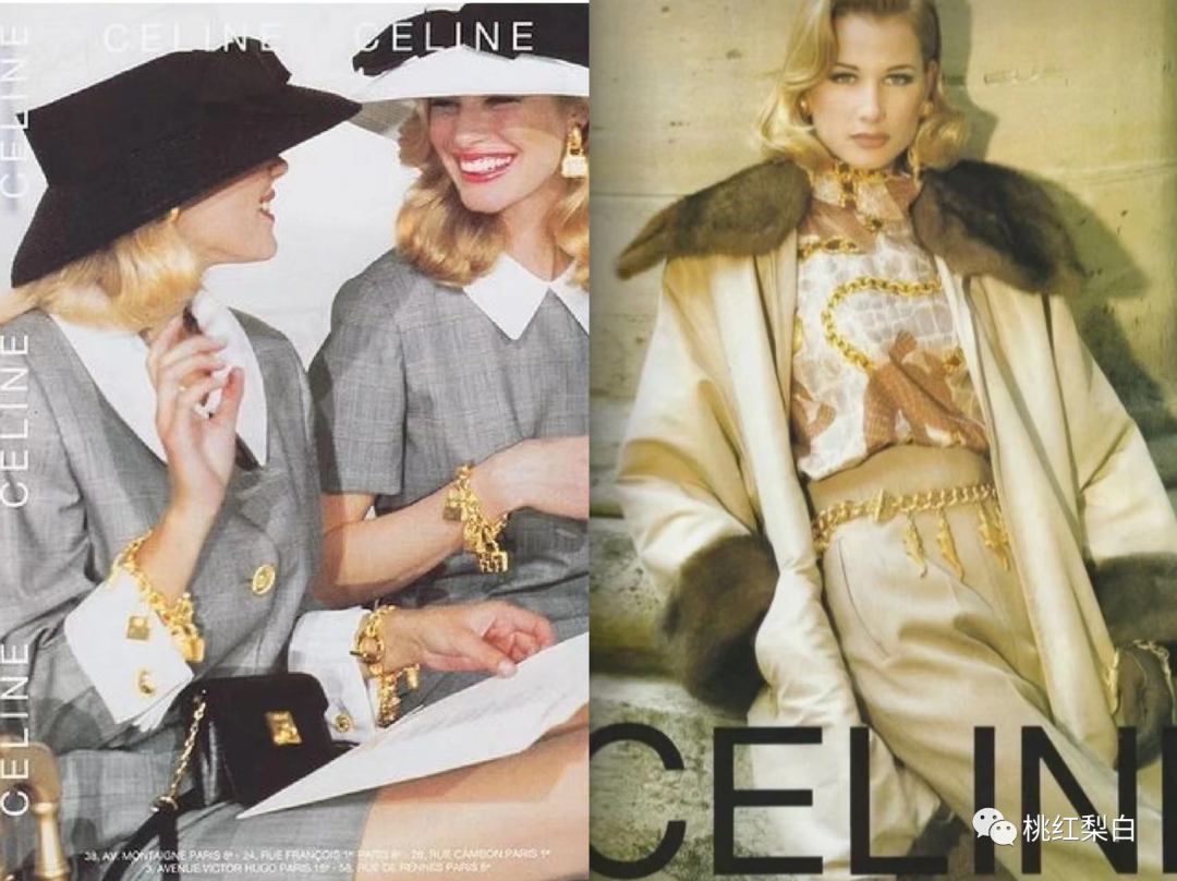 Old Celine當年的時尚畫報裡,也隨處可見同款自信有氣場的女郎。 閃閃發光又流光溢彩的年代。