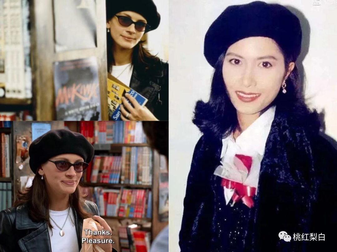《諾丁山》裡的朱莉亞·羅伯茨,戴著貝雷帽穿黑皮裝的樣子,也和《第三類法庭》裡的邵美琪,如出一轍。 現在看起來,種草感也是拉滿的。
