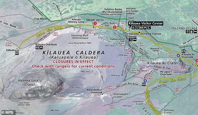 夏威夷火山國家公園對游客開放,但當局鼓勵徒步旅行者留在有標記的小徑上。