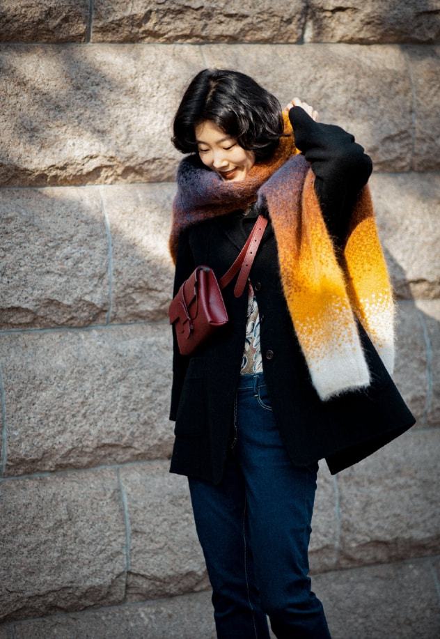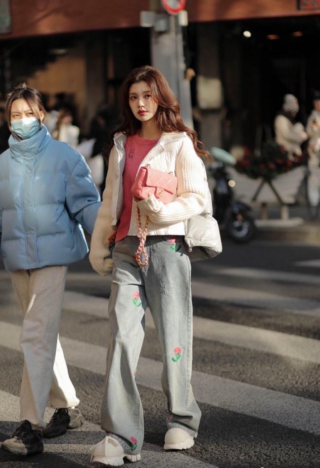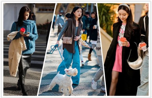 不管是怎樣的穿搭,或者不管是怎樣的街拍形式,上海女孩都比較喜歡用亮色進行點綴,在服裝上加入藍色、粉色等等,都能一掃秋冬的沉悶感,帶來個性與新鮮的穿搭效果。