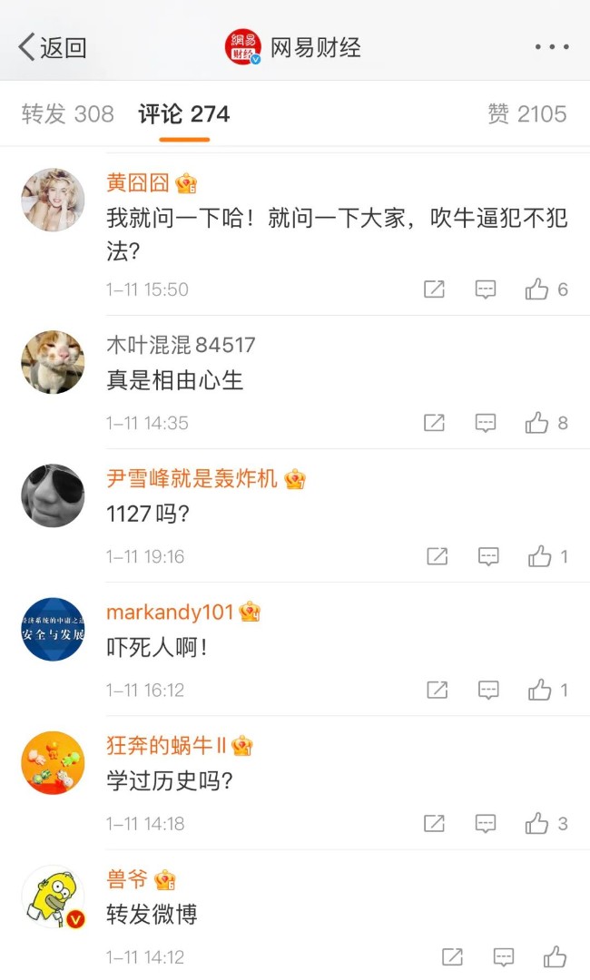 在网易财经发布该条新闻的微博下,引来大量网民嘲讽揶揄。