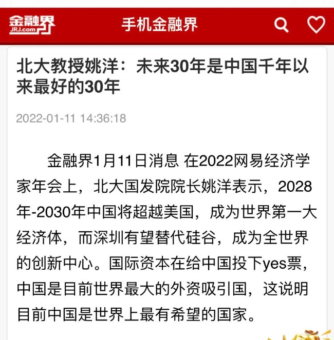 北京大学国家发展研究院院长姚洋日前在“2022网易经济学家年会”上表示,2028年-2030年中国将超越美国,成为世界第一大经济体,并提到“中国未来30年是千年以来最好的30年,上一次还得回溯到北宋。因为中国又重新回到世界技术的前沿上了,我相信技术决定一切。”