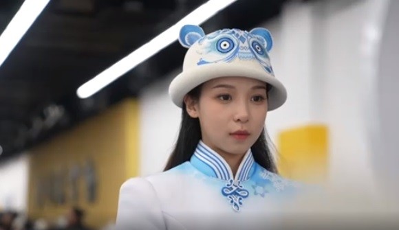 入场仪式中,每位引导员头上斜戴一顶小帽子,虎头图案和两只竖起的耳朵俏皮可爱。