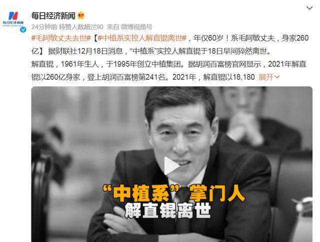 12月18日早间,突然有媒体曝出中植系实控人解直锟逝世,享年61岁。