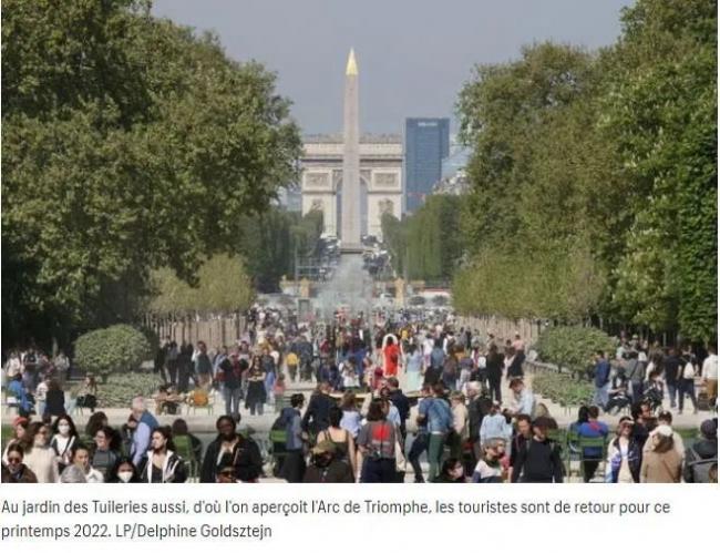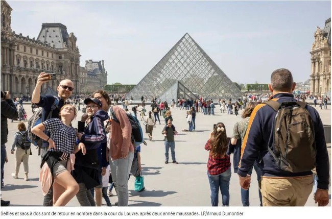 《巴黎人报》报道,今年春天,巴黎不少标志性文化旅游景点游客数已恢复到2019年疫情前的水平,外国游客也已陆续回归法国,重新超越法国本土游客数量。