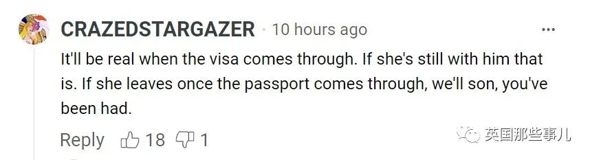 “如果签证到期后,她还在他身边,那可能是真爱。如果护照一到手她就离开,呵呵,你罪有应得。”