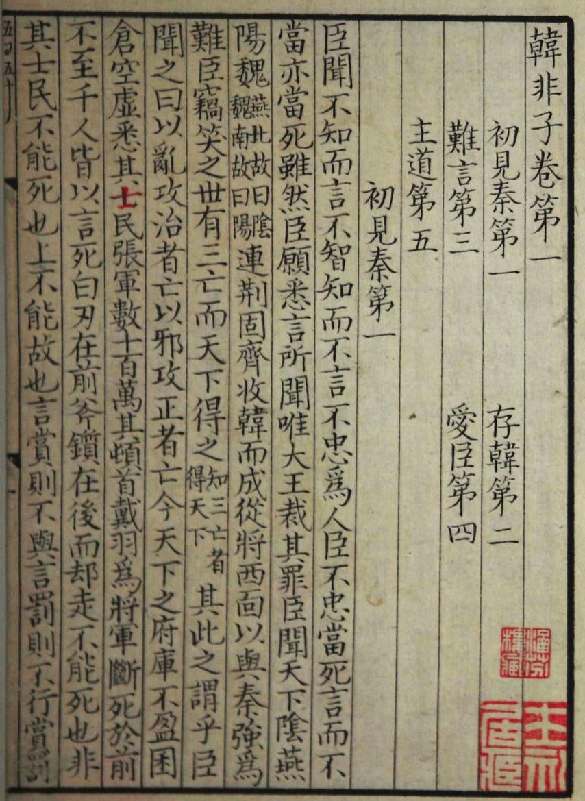 最可能的情况是这篇《初见秦》和下一篇没头没脑的《存韩》,本来是一整篇,完整记录了李斯和韩非围绕秦韩关系斗法的完整文字。却在形成传世本的流传过程中被割裂,以至于《初见秦》也算在了韩非的头上,平白多了一个卖国贼的形象。