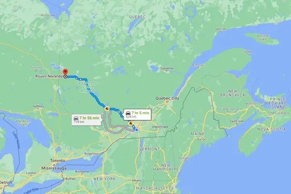 这个城市就是Rouyn-Noranda市(鲁因诺兰达市),距蒙特利尔车程大约7小时。