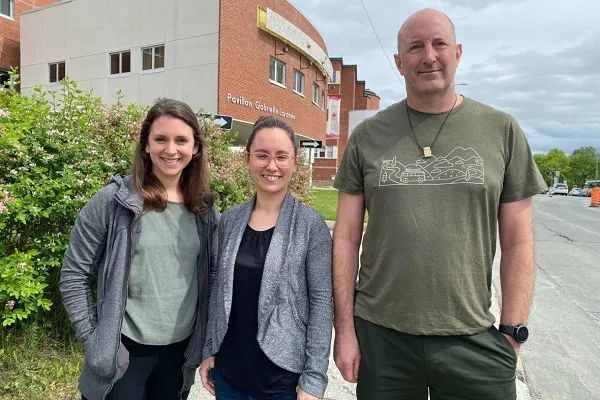 家庭医生Clodel Naud-Bellavance(左)、Marie-Pier Lemieux(中)和 Frédéric Bonin(右)呼吁魁省政府限制Rouyn-Noranda的砷含量 (Jean-Marc Belzile/加拿大广播电台)