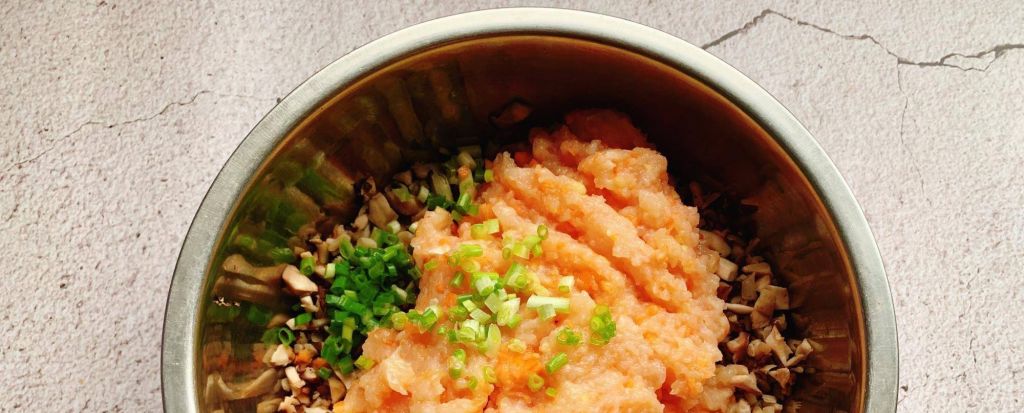 3.将鸡胸肉切小块,胡萝卜丁,放入料理机中搅成泥状,香葱切葱花,一起放入大碗中。