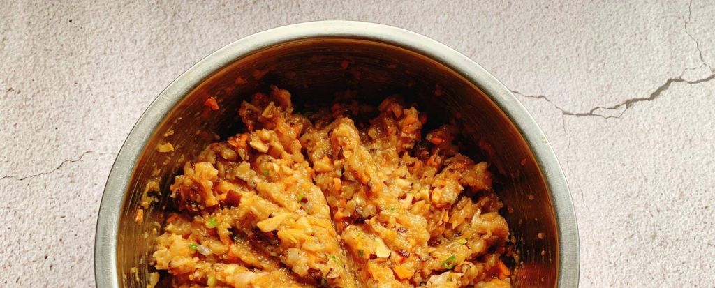 4.放适量盐,丸子油炸的时候水分会挥发,所以盐比平时炒菜的盐要少一点,放一勺料酒,一勺生抽,一勺蚝油,一勺胡椒粉,一勺玉米淀粉,一勺面包糠,打入一个鸡蛋,沿一个方向搅拌上劲。