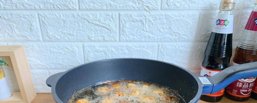 5.锅中放油,多放一点,油温烧至六成热,将肉馅搓成一个个大小均等的小丸子,或者用虎口挤出丸子,用勺子放入油锅中,中小火炸至丸子定型捞出。再将油温升高,将丸子复炸一遍捞出。