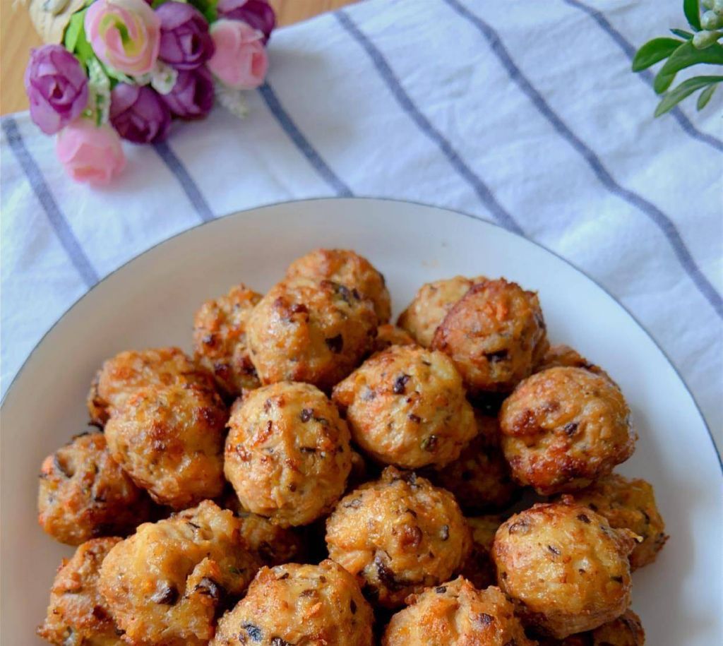 6.边炸边吃,实在是太香了,鸡胸肉没有水煮着吃那么干巴巴的,这样的鸡肉丸子外焦里嫩,一口一个,超级好吃呢!