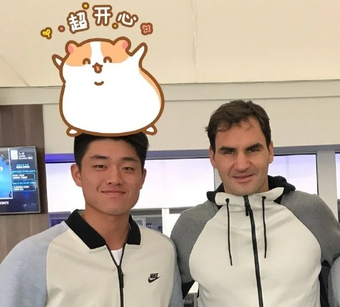 2017年11月,吴易昺与费德勒合影,图源吴易昺微博