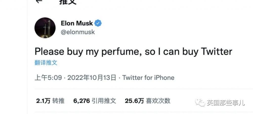 马斯克当香水销售员当得尽职尽责,他在推特上摇旗呐喊,说多一个人买香水,他买下推特的机会就大一分。