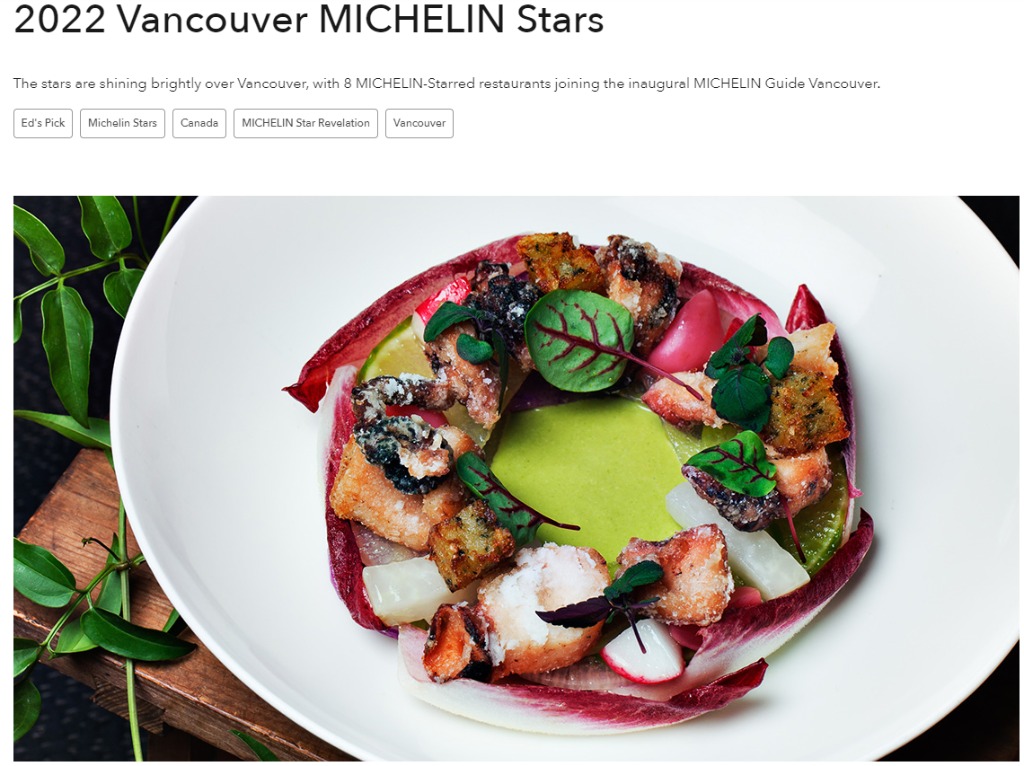 全球知名但有时颇受争议的“米其林”餐饮指南公布了获得米其林一星的8家温哥华餐厅。