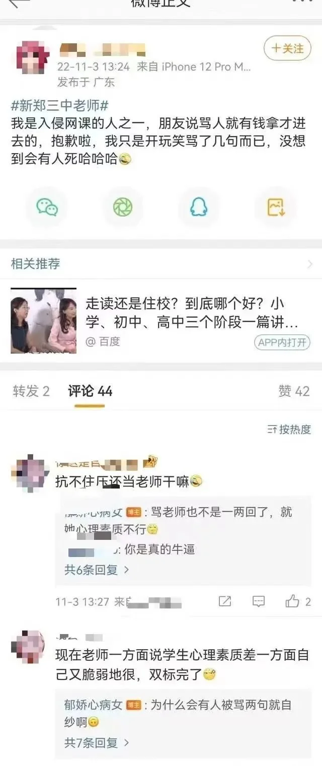 這些真真假假的指控在學生群裡基本被澄清,但在網上卻被推到了風口浪尖。一個學生說,事情發生後,他們時刻關注著評論區言論,“生怕路人被那些言論帶歪,甚至有攻擊姐姐(諾諾)一家的,我們班幾個人一起去控評,之後我們的賬號就被網暴了。無論是微信、QQ、微博還是抖音,我們的生活已經受到嚴重的幹擾,我們上課都沒有精力,甚至有的課程都沒有聽。”