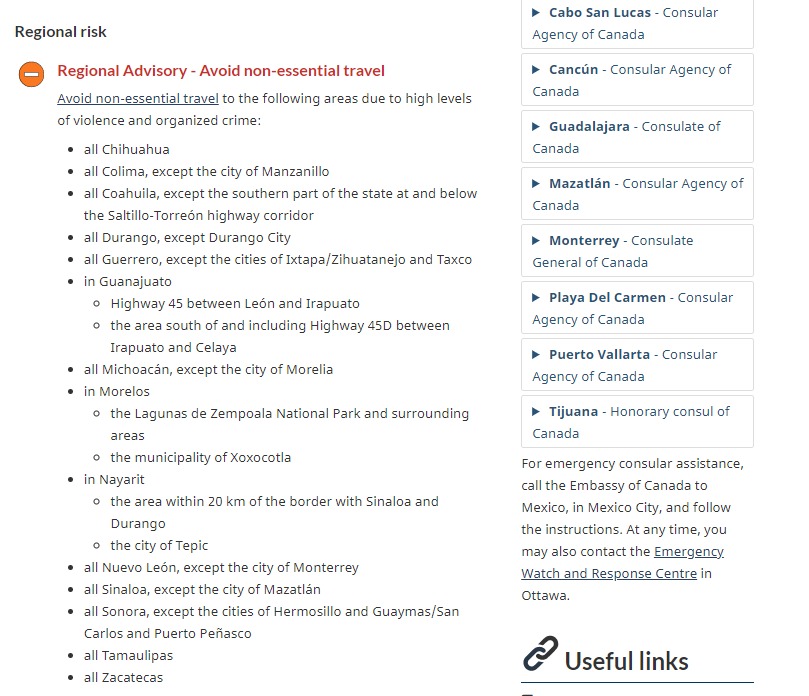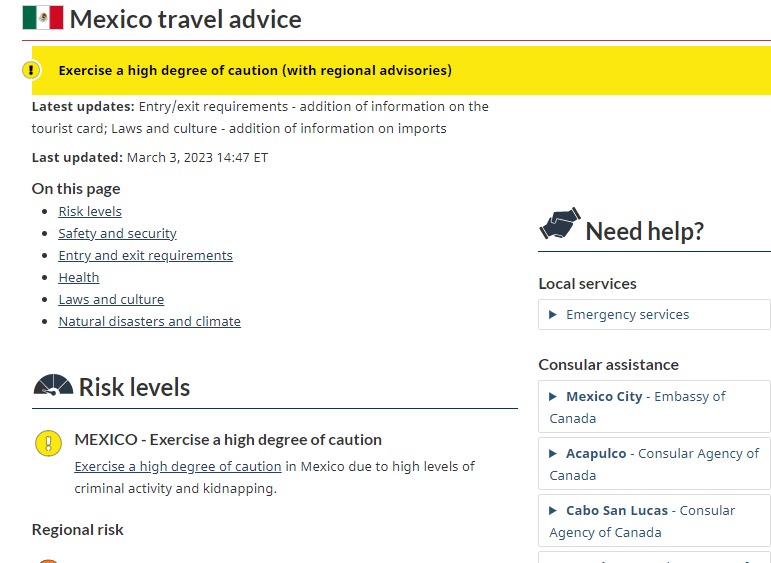 詳情可瀏覽加拿大政府網站:https://travel.gc.ca/destinations/mexico