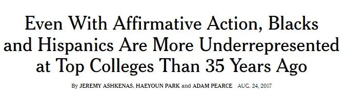 纽约时报》这篇文章在总结了各种数据后得出的结论为:即使在实施了数十年的平权法案之后,与 35 年前相比,非裔和西班牙裔学生在美国顶尖学院中的人数仍然不足。
