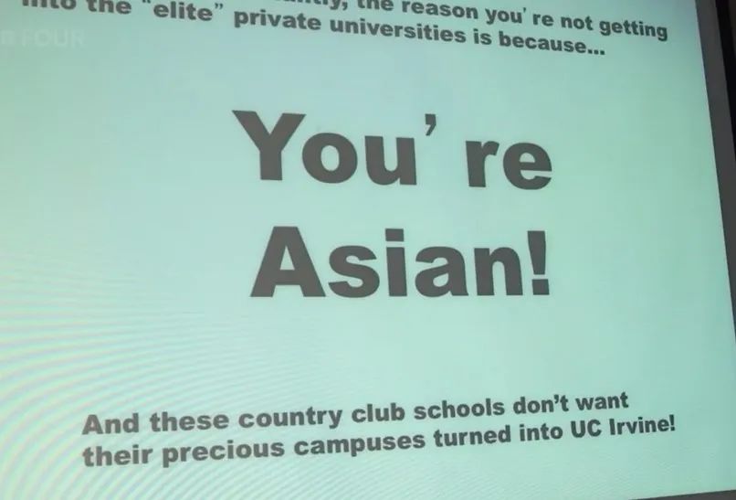 北美君曾给大家报道过一部记录华裔学生在美国升学的纪录片,影片记录了几个孩子申请大学的过程,负责高校招生的老师不止一次隐晦的对这些亚裔孩子们表示,招生,也是要看种族的。