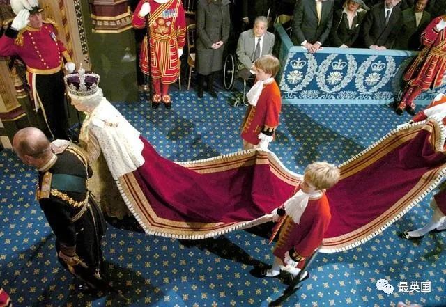 女王即位以后,这条深红色长袍偶尔也能在议会开幕中看到,是真正的“王之长袍”。