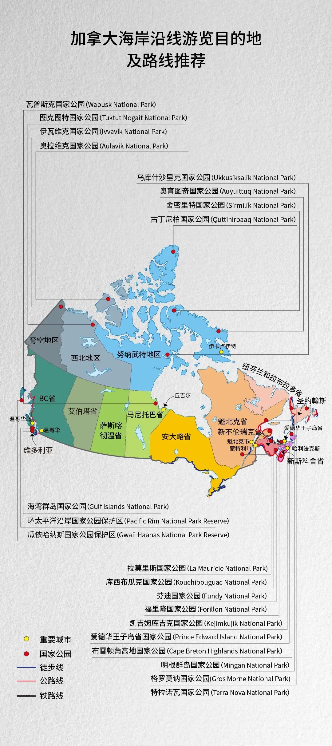 一個人走10000步大約為5-7公裡如果沿著加拿大海岸線每天走10000步悶頭走路100年都不一定能走完更何況加拿大綿延不絕的海岸線沿途匯聚了加拿大著名城市和景點