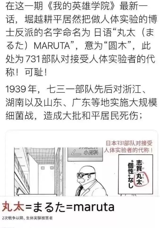 其次,这部被推荐的动漫作品明显涉及辱华内容,这部日漫《我的英雄学院》,虽然打着“英雄”二字,实则却是在日本当年的侵华暴行洗地,里面使用针对中国人的侮辱性称呼,还将这个名称给予故事中的反派人物。